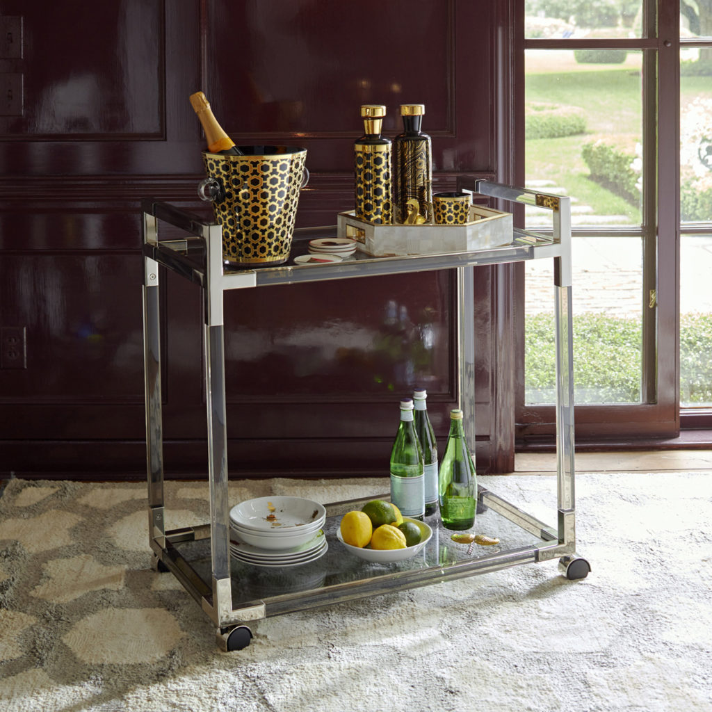 On a similar note, lucite- or transparent- furniture doesn’t take up much visual space, making it the perfect choice for a smaller area. You can find this look in bar carts, chairs, tables, you name it!