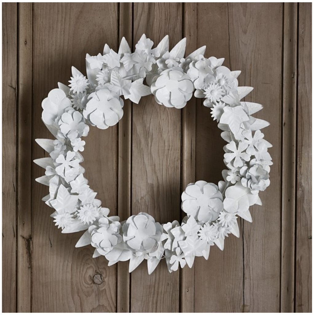 But, if you look a little more outside the box, you’ll find wreaths created from many unique and interesting materials like metal, felt, wool, and tinsel- just to name a few. Because these wreaths require no maintenance and are not made of fresh botanicals, they can also make for wonderful gifts (think: easy to pack or ship).